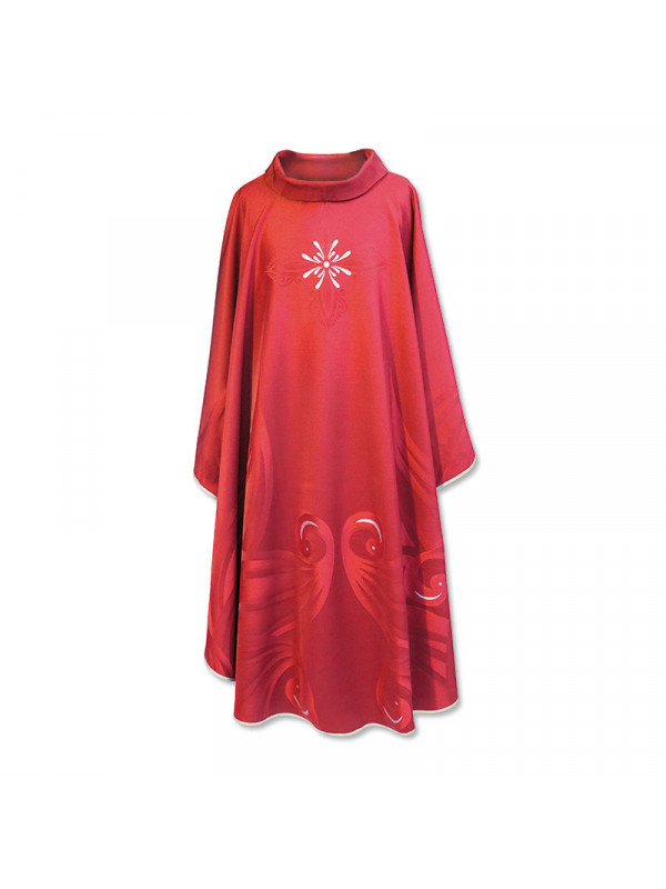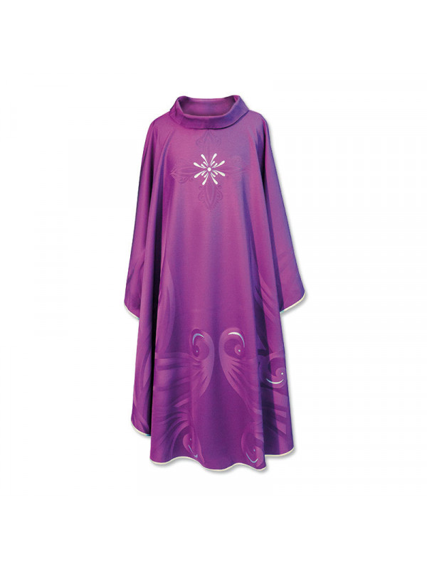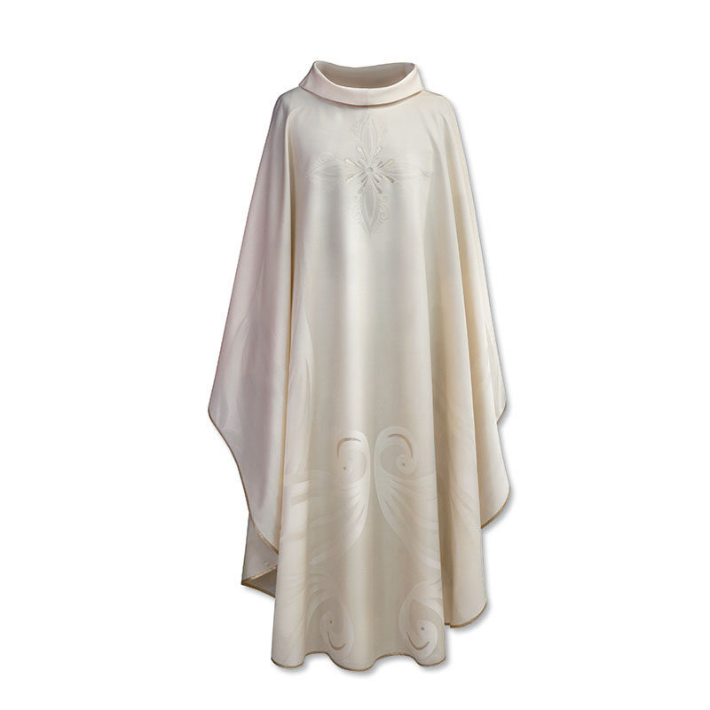 Chasuble in silk-wool, woven motif, golden hem at the edge