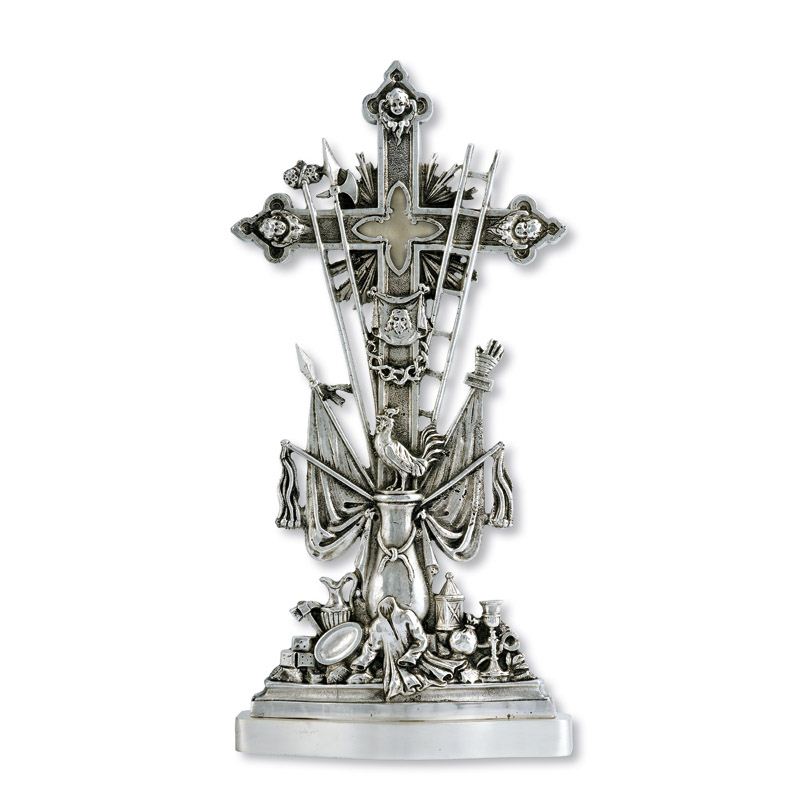 Reliquiario della Santa Croce - h cm 42 Reliquiario della Santa Croce in bronzo fuso cesellato. Disponibile in due finiture: argentato antichizzato o dorato a oro fino. Altezza cm 42. Reliquiario della Santa Croce in bronzo fuso cesellato