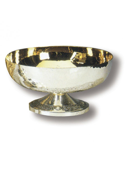 Pisside offerta con decorazione in stile celtico sulla base. Pisside offerta con decorazione in stile celtico cesellata a mano sulla base. Diametro cm 14. Cod. 9297 - Diametro cm 14