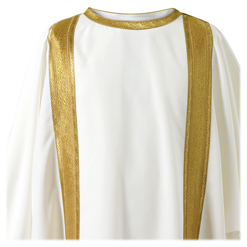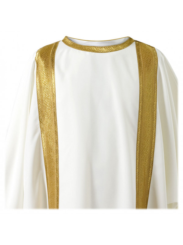 Dalmatic in silk-wool or polyester, antique gold galloons, small galloon at the edge, complete with relative deacon stole