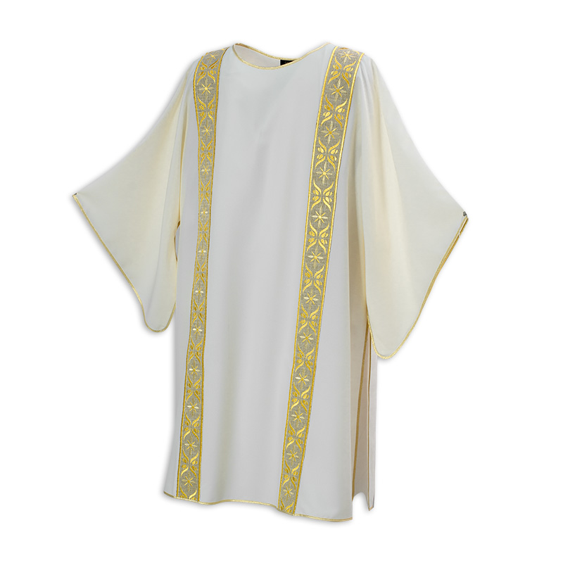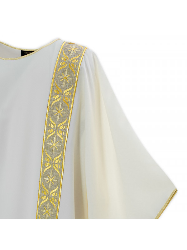 Dalmatic in polyester with embroidered ribbons, complete with deacon stole, available in 4 liturgical colors