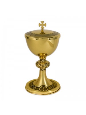 Pisside in metallo cesellato stile barocchetto, finitura bicolore Pisside in metallo cesellato stile..