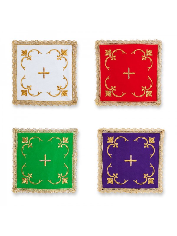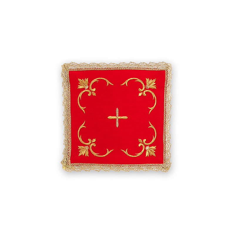 Palla in raso ricamata a macchina in oro, agremano all’orlo, disponibile nei colori liturgici