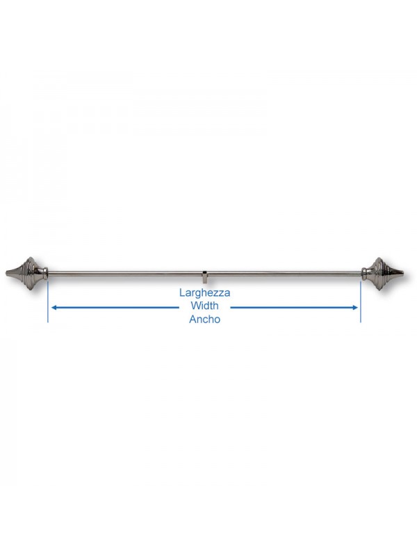 Traversina per Stendardo in ottone nichelato con pomi torniti ed aggancio centrale per asta. La larghezza è lo spazio utile tra i due pomi