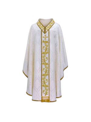 Casula in faglia colore avorio, ricchi ricami in oro e seta con api come simbolo del culto, rose com..